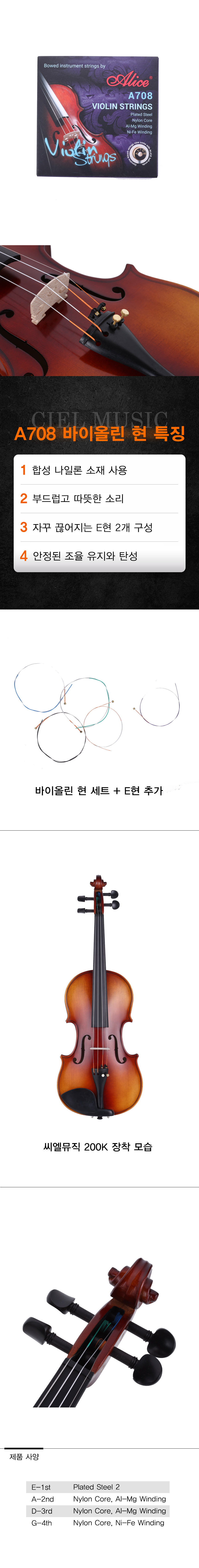 앨리스 A708 고급 바이올린 스트링